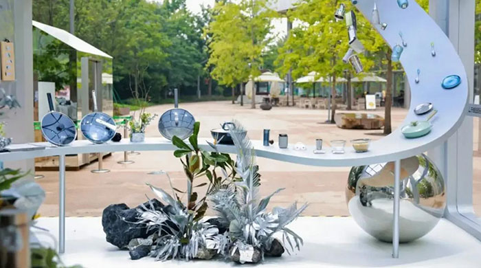 初秋午后,杭州天目里人流如織。一處銀灰風格的快閃區吸引到不少游人駐足。